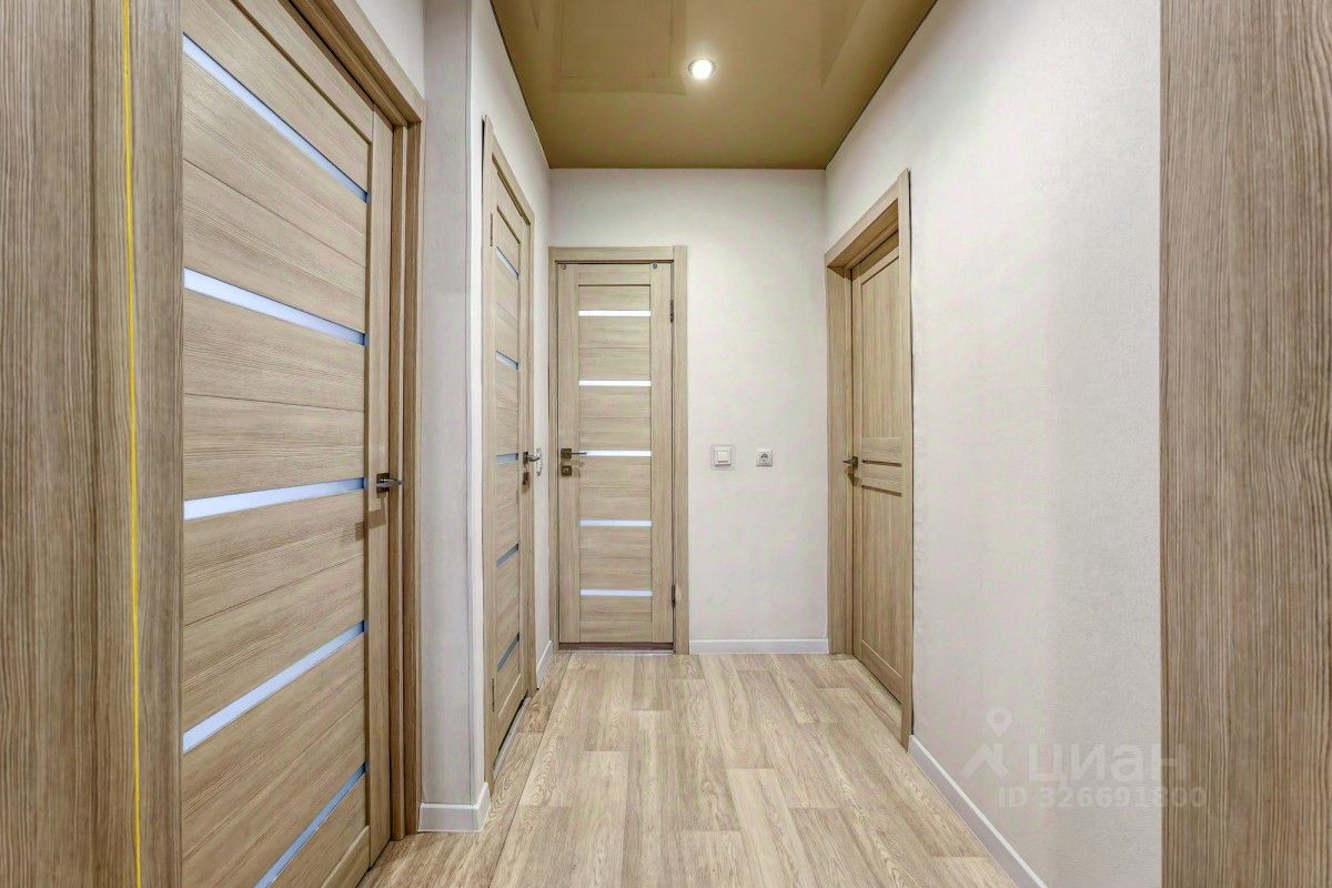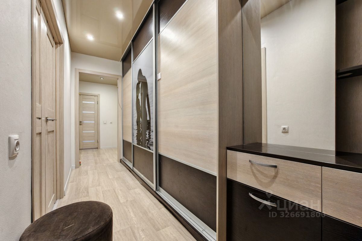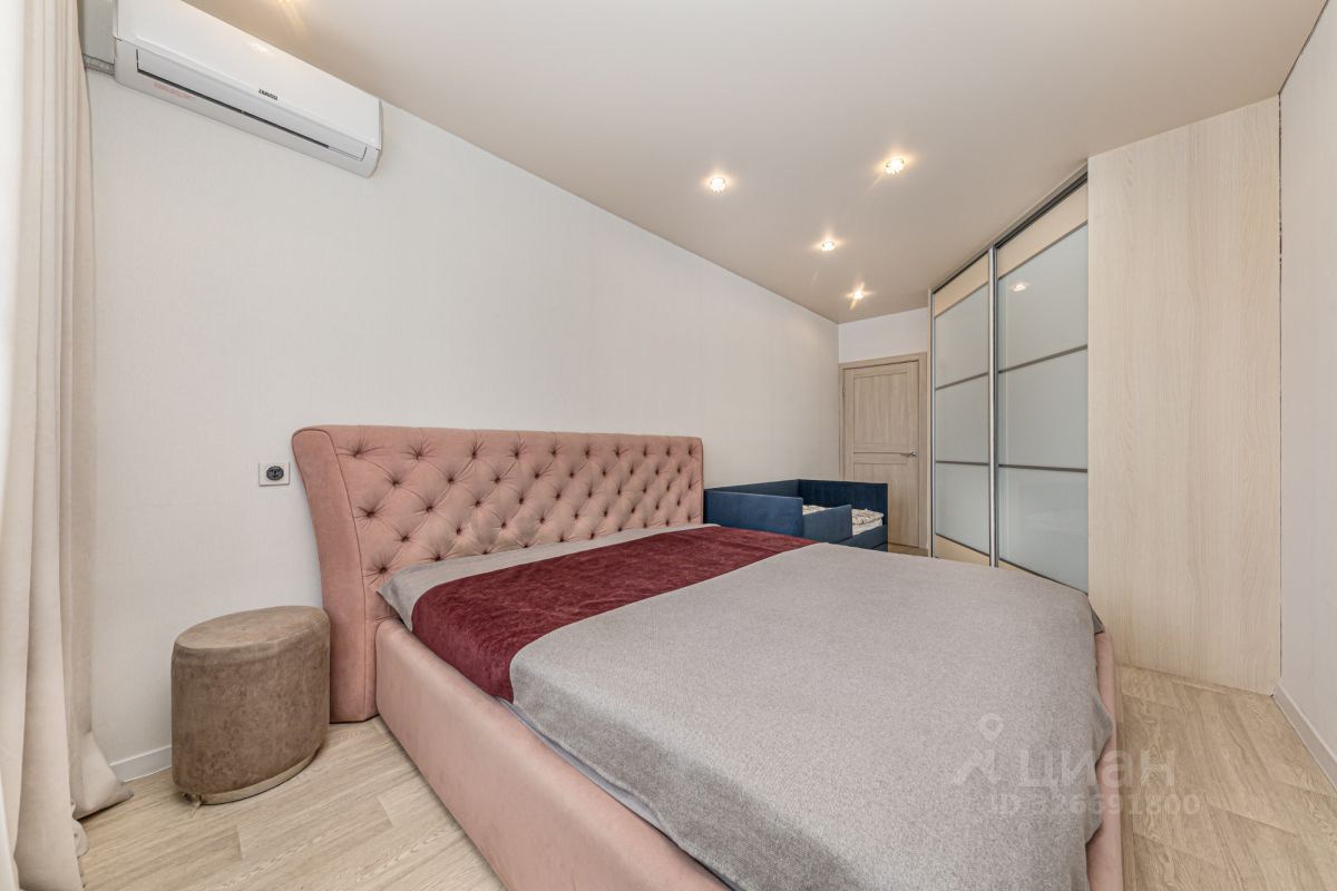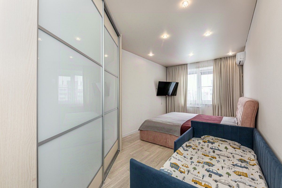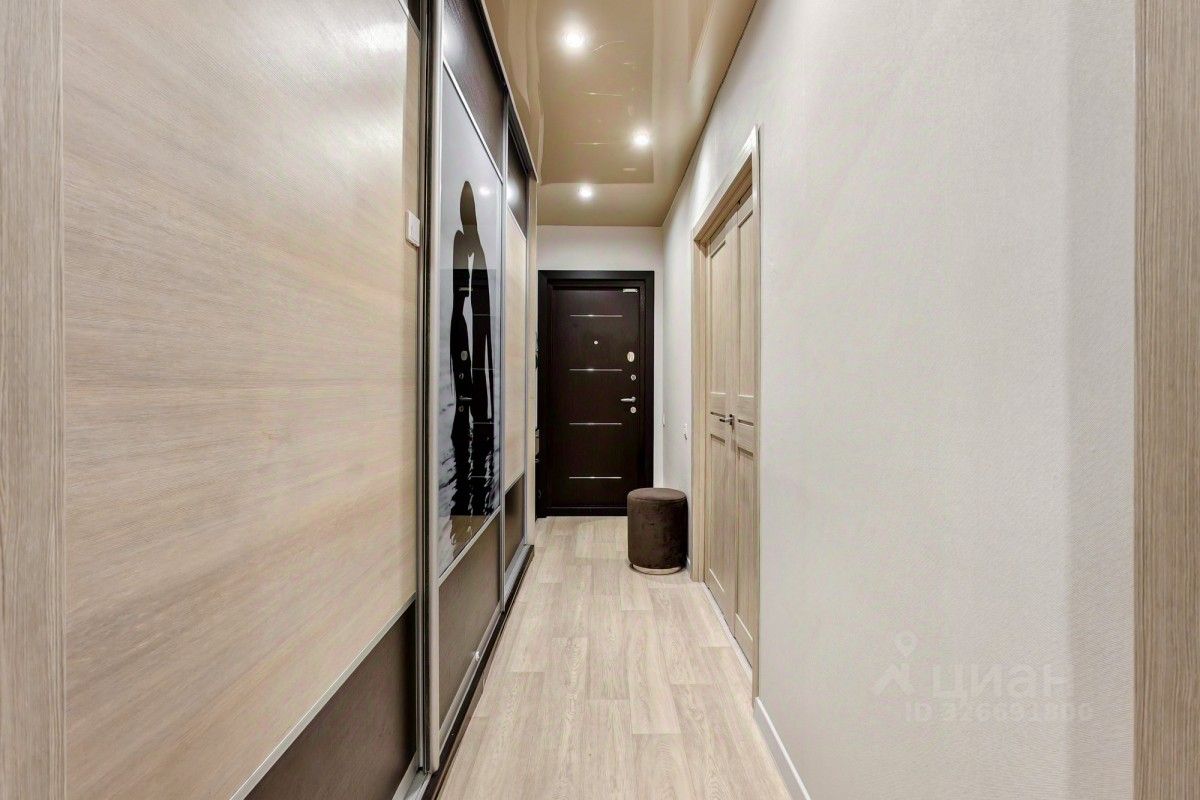 Ремонт: Выполнен аккуратный косметический ремонт. Пол — линолеум, потолок — натяжной, стены выровнены и оклеены светлыми виниловыми обоями, в санузле — кафель. Кухня: Установлен качественный, продуманный кухонный гарнитур. Встраиваемая техника остаётся: духовой шкаф, варочная панель, вытяжка, холодильник. Комнаты: Спальня (16,5 кв. м.): Просторный угловой шкаф-гардероб, установлен новый кондиционер. Вторая комната (17,9 кв. м.): Установлен новый кондиционер. Прихожая: 6,4 кв. м. — большой встроенный гардероб.