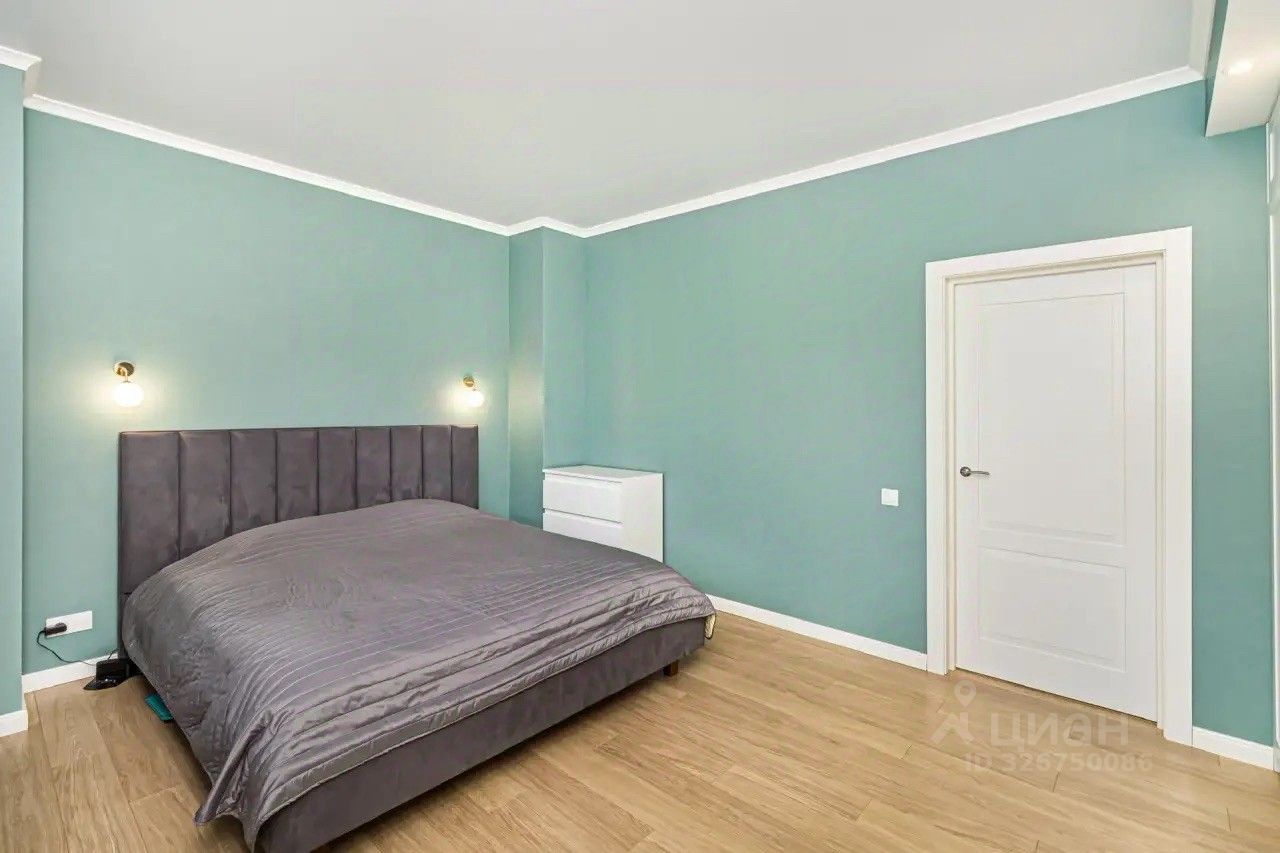 Большая двуспальная кровать, красивый функциональный спальный гарнитур, есть рабочая зона — удобно, когда нужно сосредоточиться и спокойно поработать.