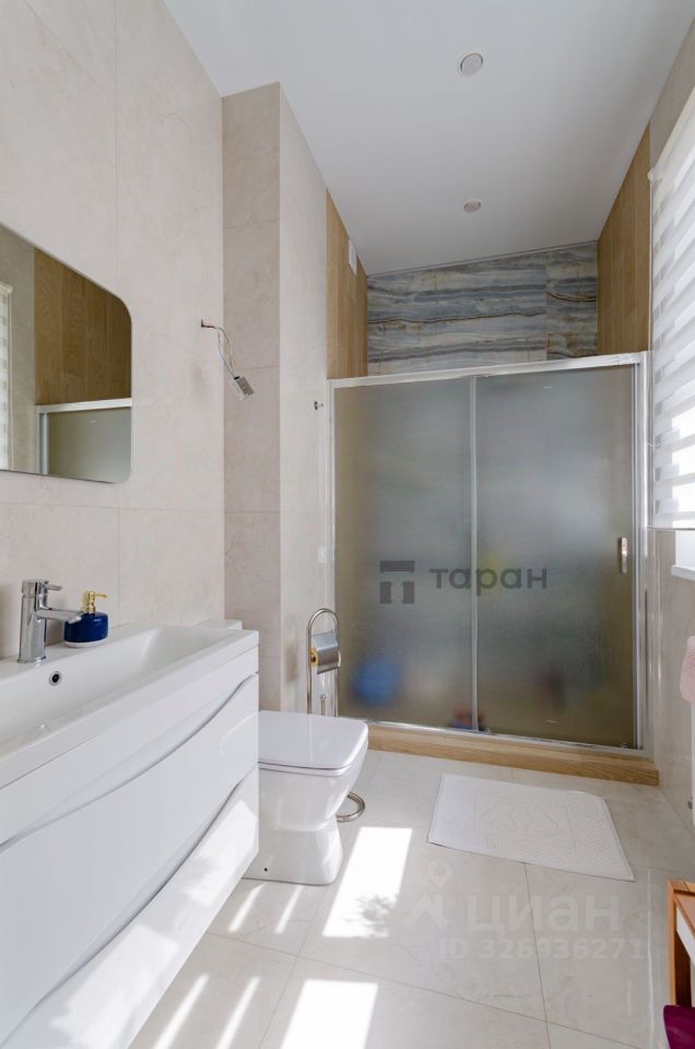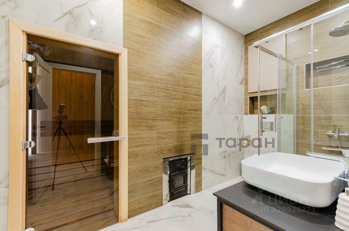 Teплый пол по всему дому. Удобная эргономичная планировка на первом этаже: просторная кухня-гостиная, с эко камином, гостевой дом с банным комплексом на дровах ,гостевая гардеробная. Холл и санузел. На втором этаже три спальни ,одна из которых мастер-спальня с большой гардеробной и санузлом ,отдельная гардеробная комната с окном, из которой можно сделать кабинет. Санузел с ванной комнатой. Мебель изготовлена по индивидуальному заказу, остаётся новому собственнику. Освещение Maytoni.