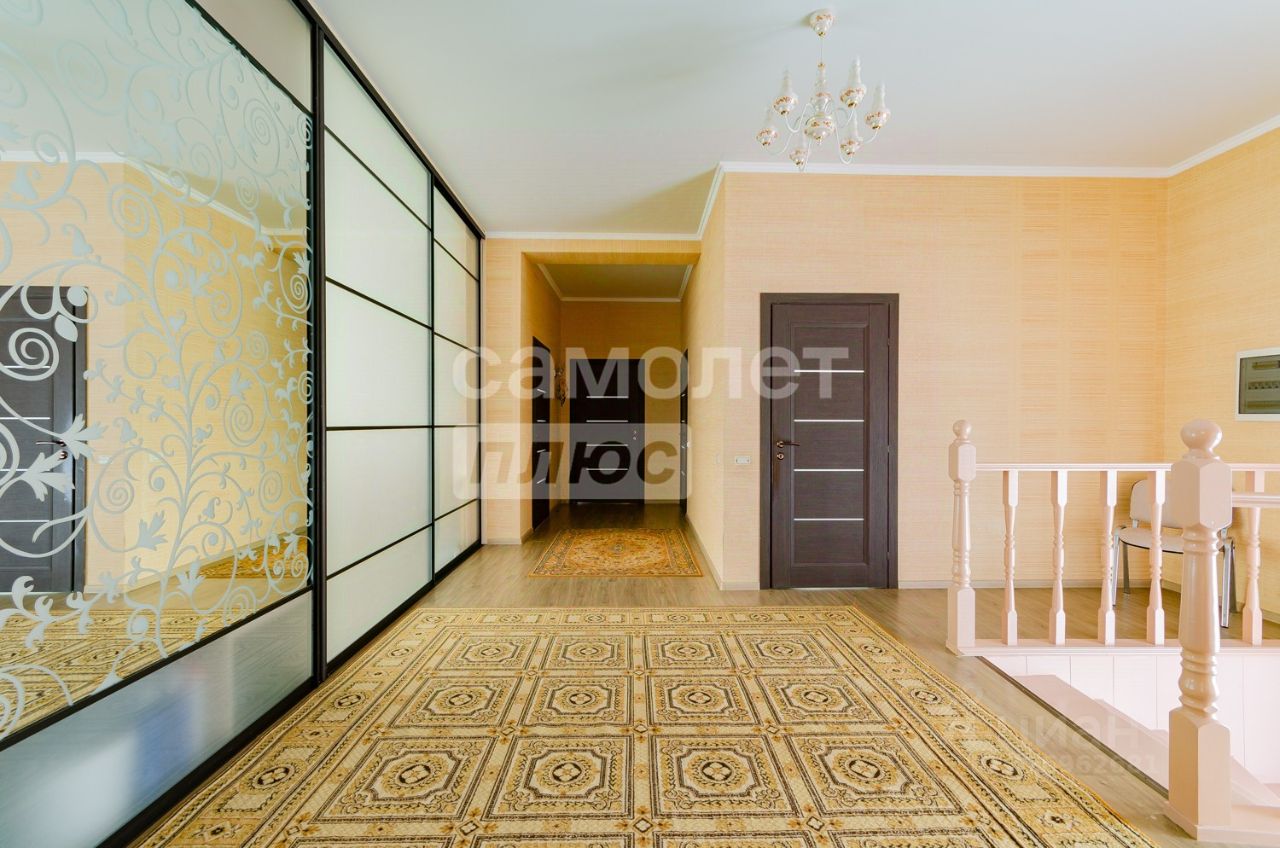 Открывается просторный второй этаж, оснащен большим количеством естественного освещения, с прекрасными видовыми характеристиками! Холл - 25 кв.м. Стены выровнены, окрашены. Натяжной потолок. Полы плитка при входе в гостиную-кухню, и ламинат. С холла входы на гостиную кухню, спальни и летнюю закрытую террасу. Установлен глубокий, вместительный шкаф купе с зеркальными и стеклянными дверьми. Гостиная-кухня - 50 кв.м. для большой, дружной семьи и гостей! Имеет прекрасное освещение за счет трех окон. Выполнен ремонт: стены выровнены, обои. Потолок натяжной. Полы ламинат. Установлена мебель : кухня во всю стену из фасадов МДФ с встраиваемой бытовой техникой. Обеденный стол и стулья в классическом стиле из материалов массива, производство Италия. Диван из натуральной кожи, в молочном цвете. Бытовая техника: Холодильник двух створчатый, Духовой шкаф, варочная панель. Комната спальня - 20 кв.м. Светлая, уютная с двумя большими окнами. Выполнен ремонт: стены выровнены, потолок натяжной, полы ламинат. Установлена элитная Итальянская мебель из массива, в классическом стиле, глубокого, насыщенного цвета. Двуспальная кровать, тумбы прикроватные, комод-консоль, шкаф четырех дверный, пуфик. Комната спальня - 18 кв.м. Стены выровнены, обои. Потолок натяжной. полы ламинат. Оснащена мебелью: кровать двуспальная, шкаф угловой, комод, тумбы прикроватные, кресло. Комната компьютерная - 14 кв.м. Стены выровнены, обои. Потолок натяжной. Полы ламинат. Оснащена всей необходимой мебелью. Душевая - 10 кв.м. Светлая, с окном. Выполнен ремонт: стены панели. Потолок натяжной. Полы плитка. Установлена большая душевая кабина. Тумба с раковиной. Навесные шкафы с зеркалом. Стеллаж. Стиральная машина автомат. Сан.узел светлый с окном - 6 кв.м. Установлена сантехника. Помывочная для рук. Выход на летнюю, закрытую террасу - 150 кв.м. Это место является притяжением для гостей и мероприятий! Предусматривает зоны для спорта, отдыха, бильярдную, бильярдный стол установлен.