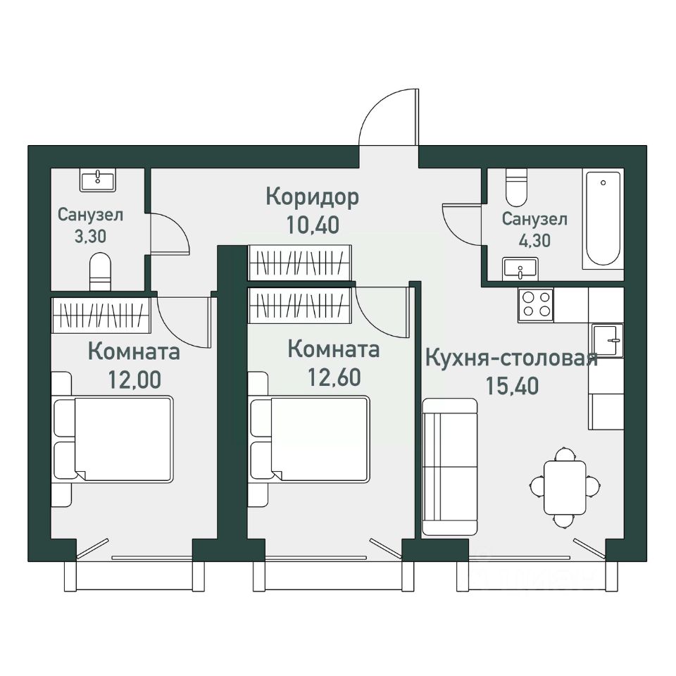 Общая площадь57,6 м2
