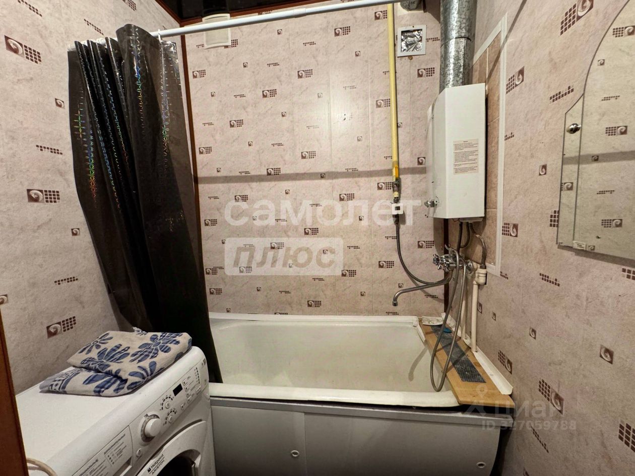 В квартире есть кухонный гарнитур, плита, холодильник, обеденный уголок, шкаф в прихожей, диван, стиральная машина.