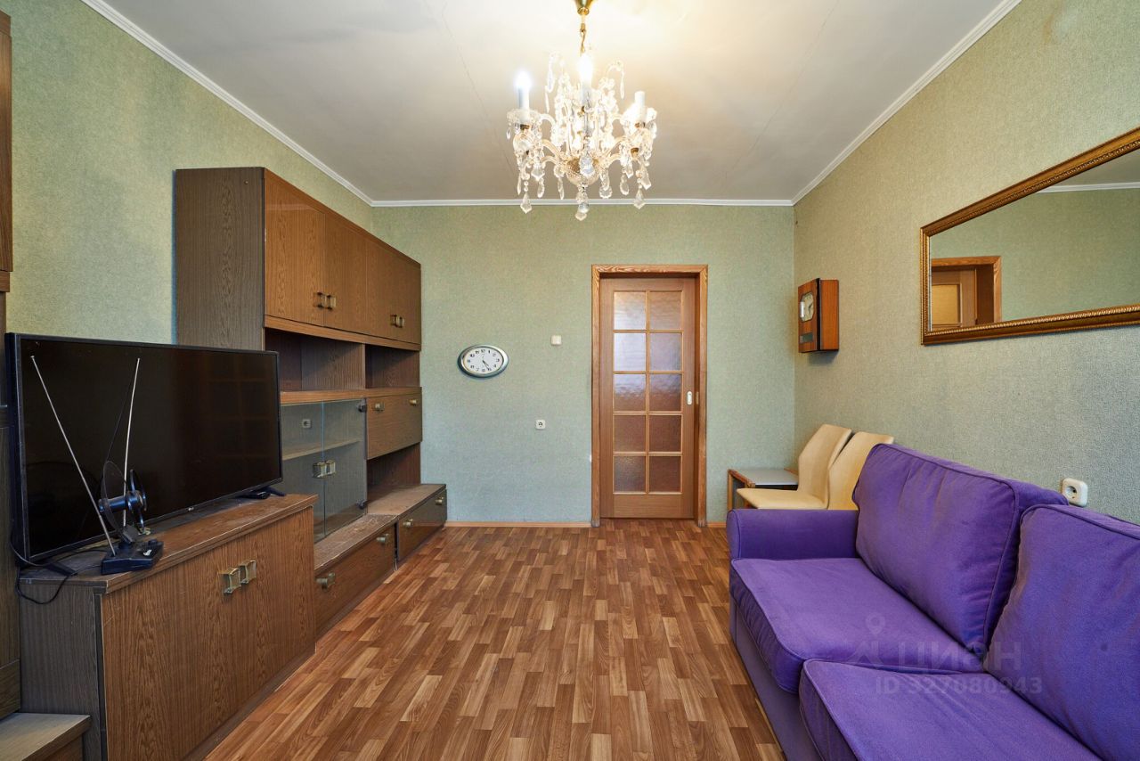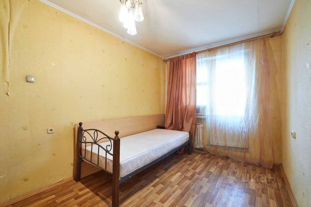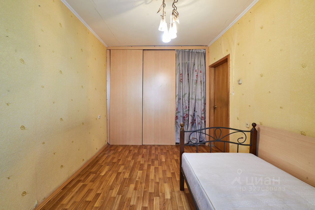 Комнаты - раздельные, правильной формы. Из маленькой комнаты выход на небольшую, остекленную металлическим остеклением лоджию. Во всей квартире на полу линолеум. Потолок оштукатурен. Сан. узел совмещен, в кафеле.