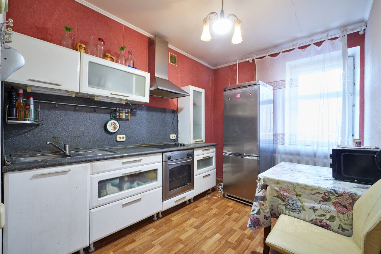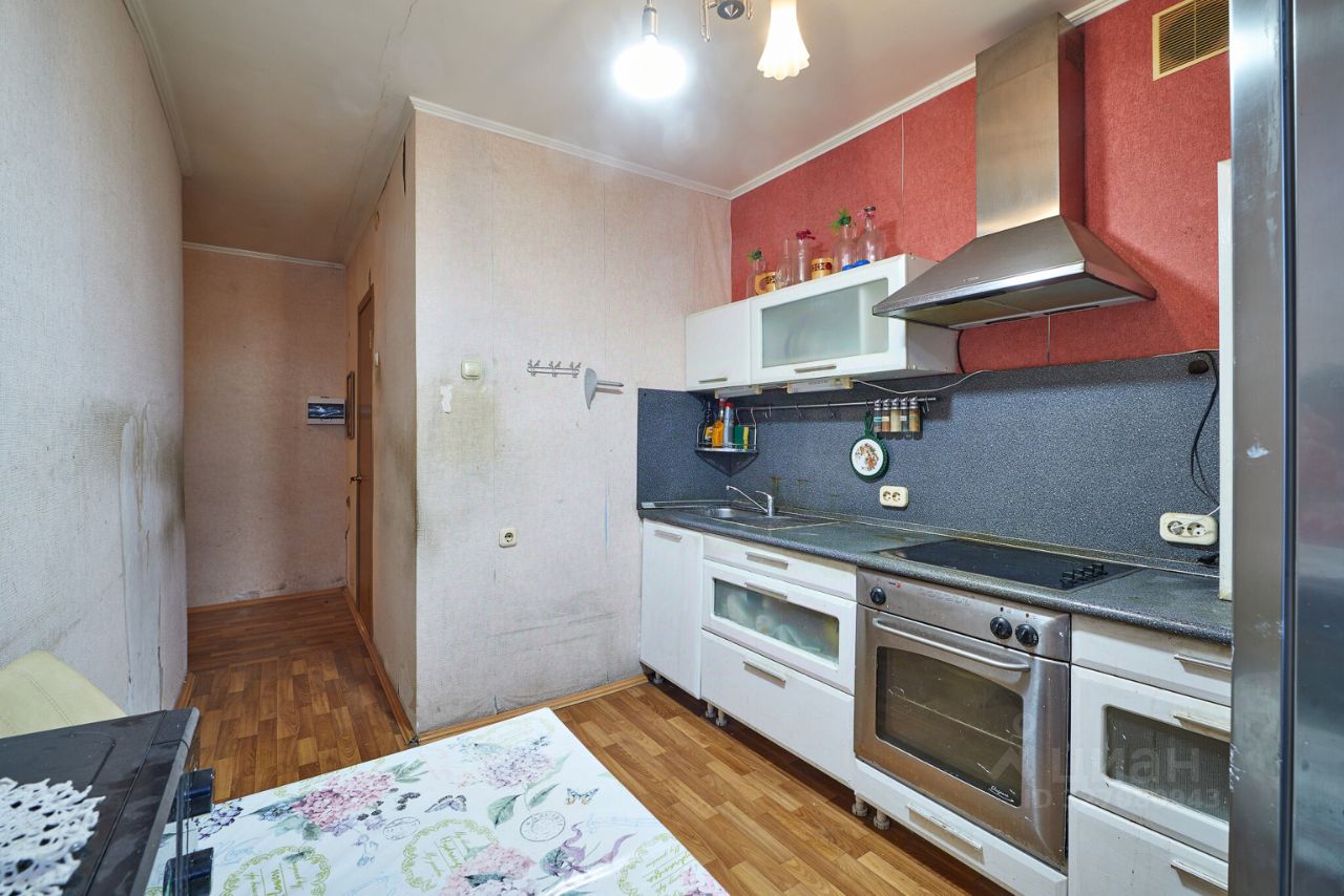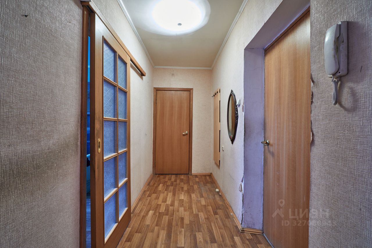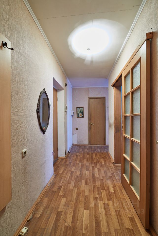 Комнаты - раздельные, правильной формы. Из маленькой комнаты выход на небольшую, остекленную металлическим остеклением лоджию. Во всей квартире на полу линолеум. Потолок оштукатурен. Сан. узел совмещен, в кафеле.