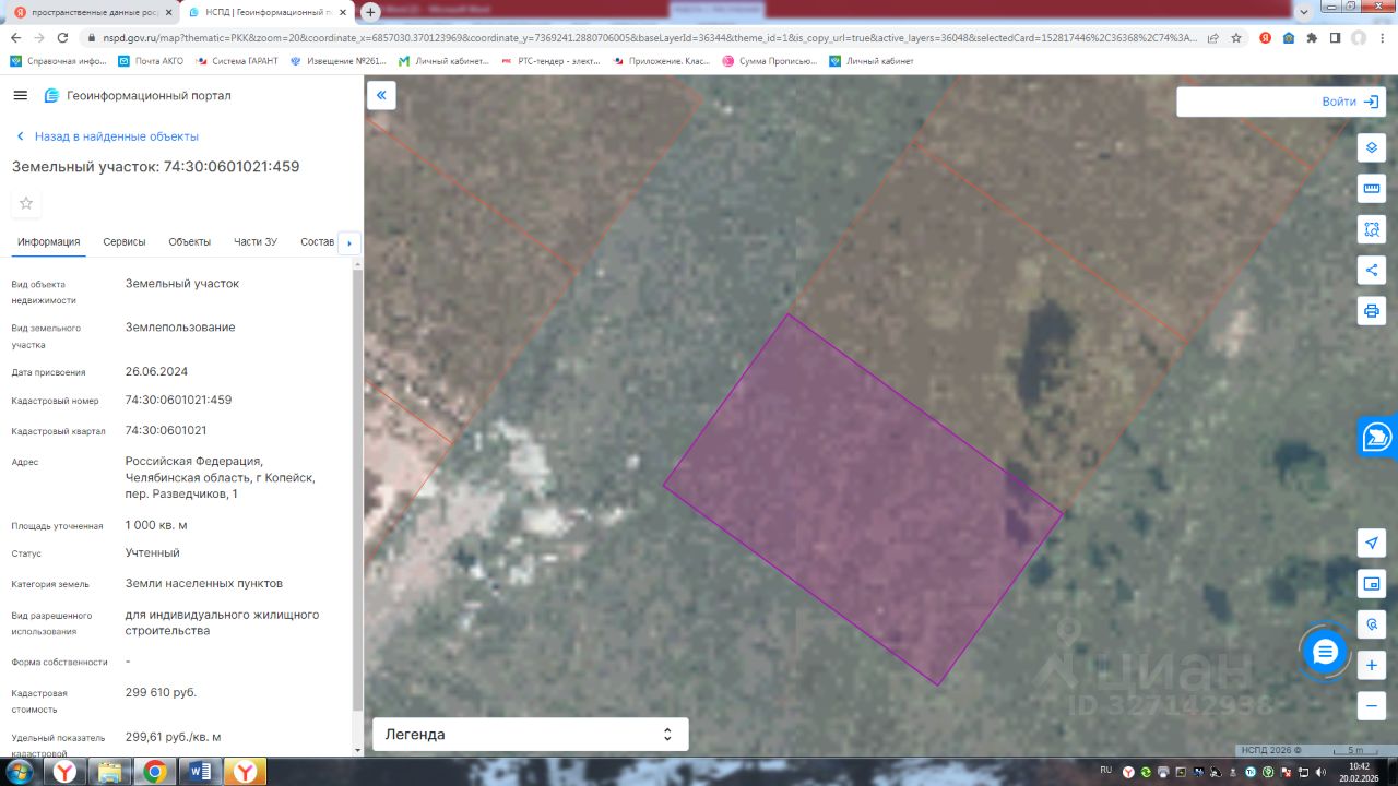 Земельный участок с кадастровым номером 74:30:0601021:459 площадь 1000 по адресу Российская Федерация, Челябинская область, г Копейск, пер. Разведчиков, 1