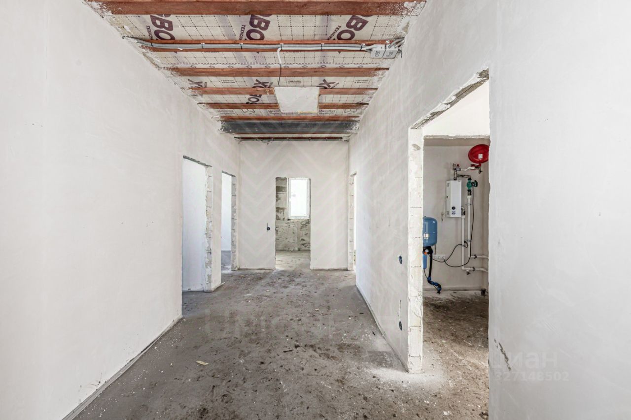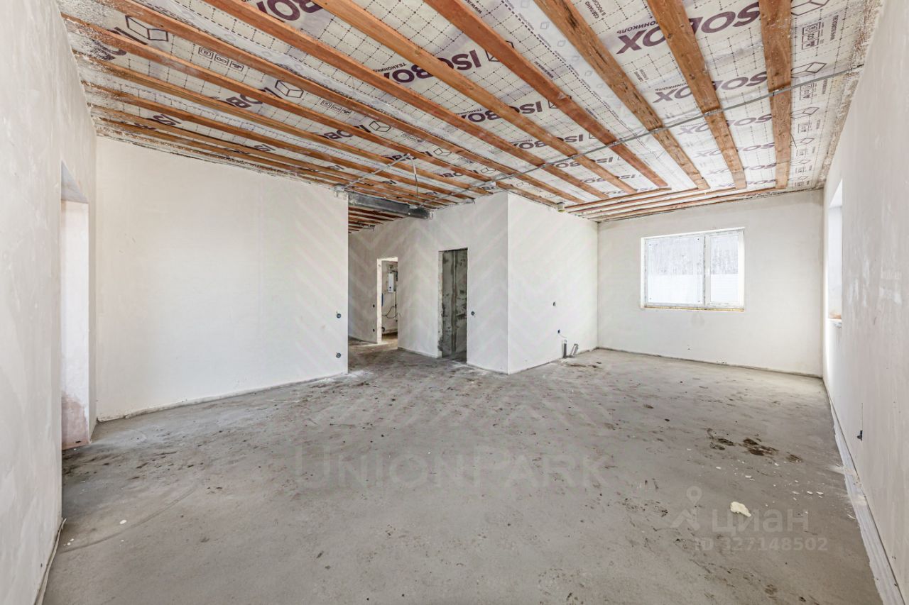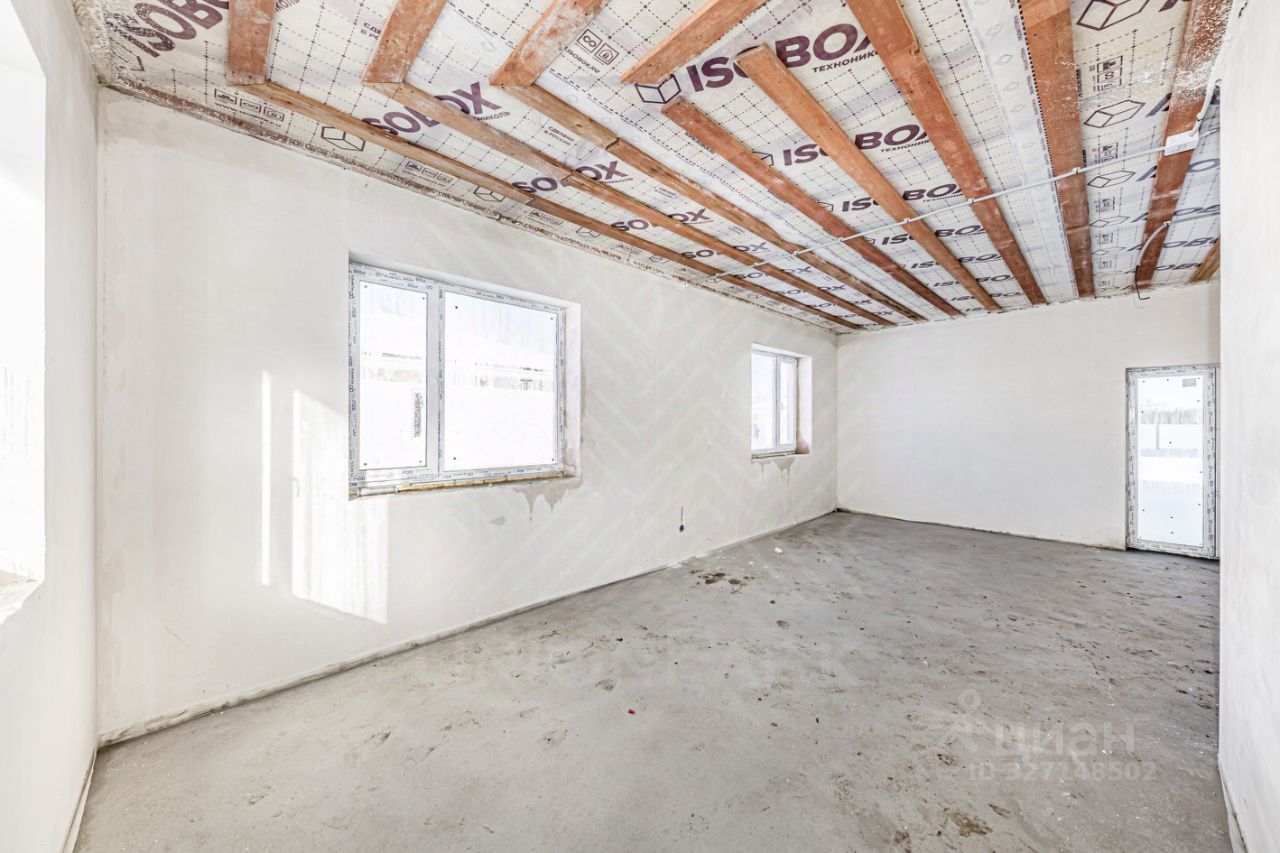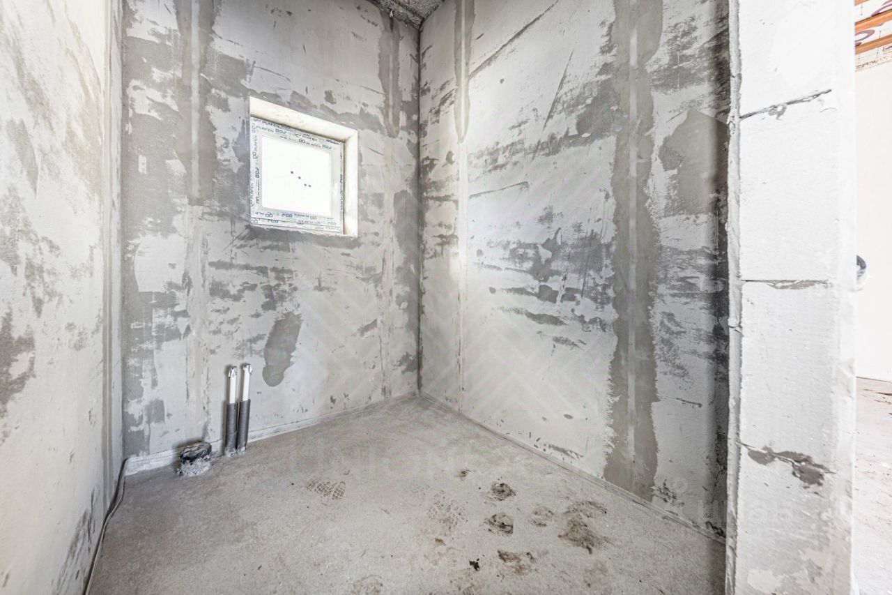Отделка: Предчистовая отделка — ровный пол (полусухая стяжка), оштукатуренные механизированным способом стены по маякам. Оборудование для отопления дома, водоснабжения и электроснабжения установлено. Фасад — чистовая отделка с утеплением, декоративная штукатурка.