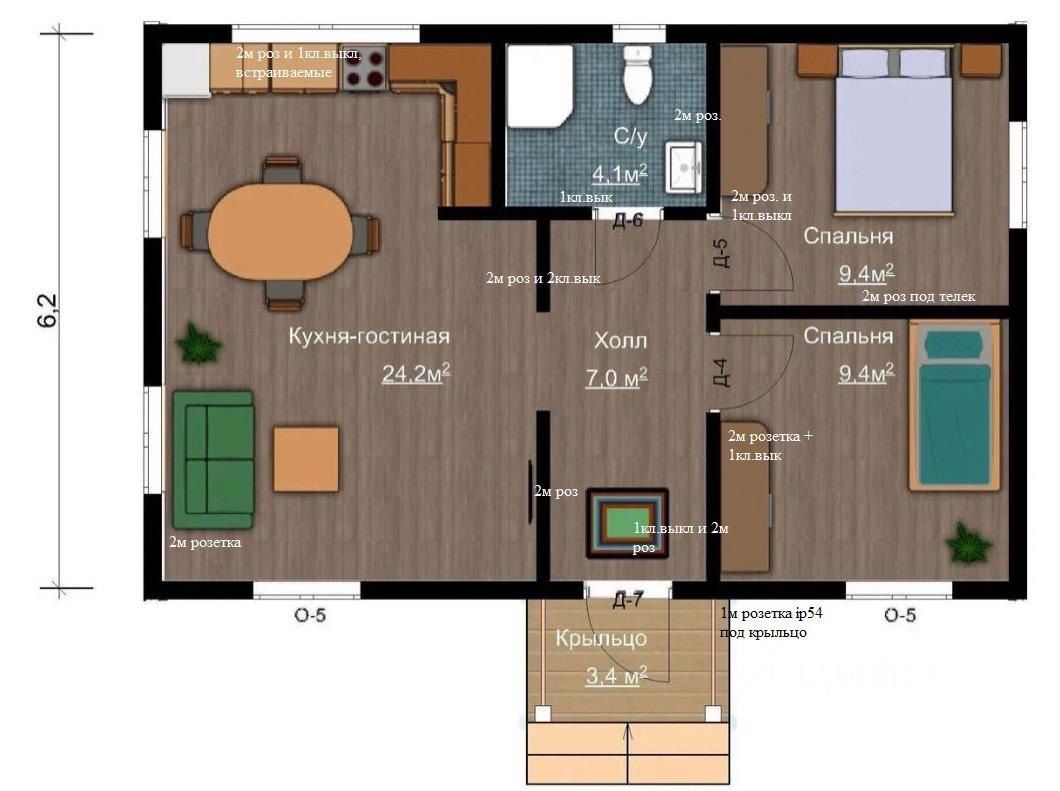 Общая площадь54,5 м2
