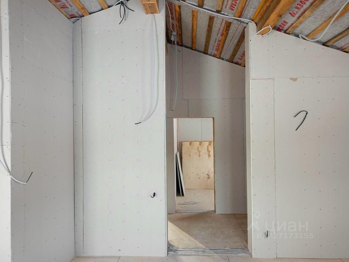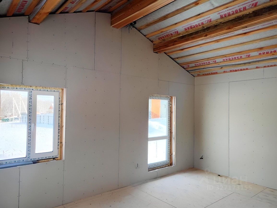 Отделка: предчистовая, потолок, пол стены утеплены, на полу фанера в два слоя толщиной 20 мм. (две по 10 мм.) уложена на обрешетку из доски, стены обшиты гипсокартоном 12 мм. Коммуникации: электричество разведено по дому, заключен договор с МРСК 15кв (счетчик на столбе) в дом не заведено, пробурена скважина 50 метров (есть паспорт) в дом не заведена, септика - нет. В доме заложены закладные под коммуникации. В поселке проводят газ, газовый распределитель перед поселком.