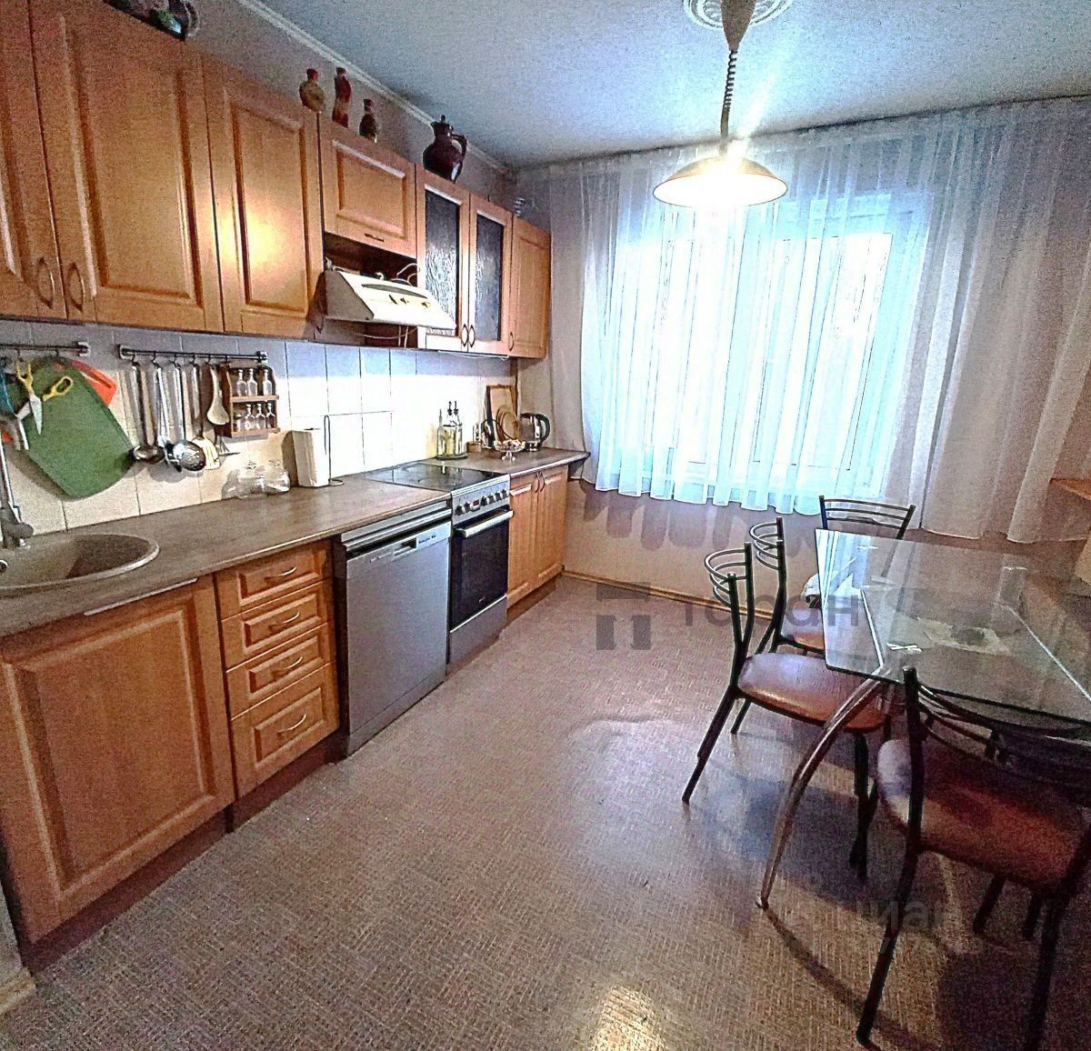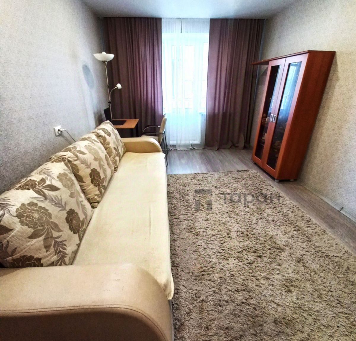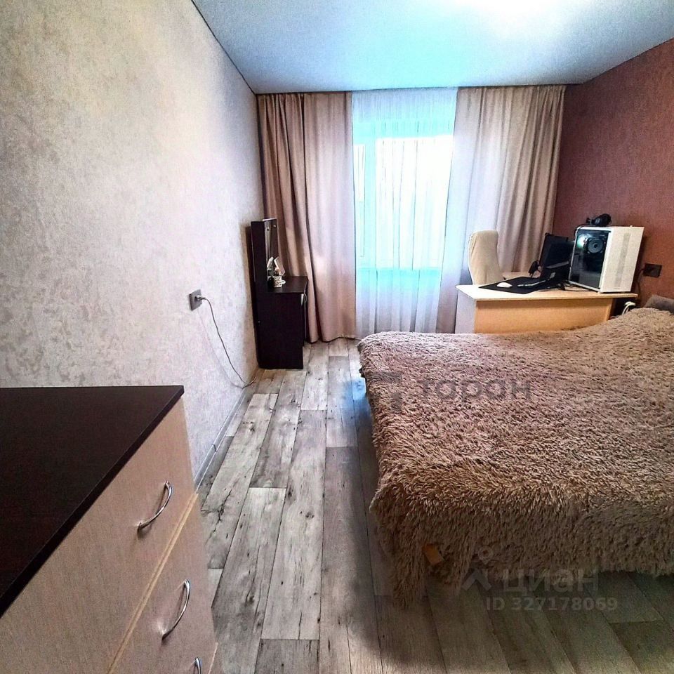 В квартире сделан ремонт: выровнены стены, установлены стеклопакеты и натяжные потолки, качественная сантехника в ванной комнате и санузле, кафель от пола до потолка, на полу ламинат и линолеум, в спальне и в коридоре шкафы-купе, лоджия и балкон застеклены.