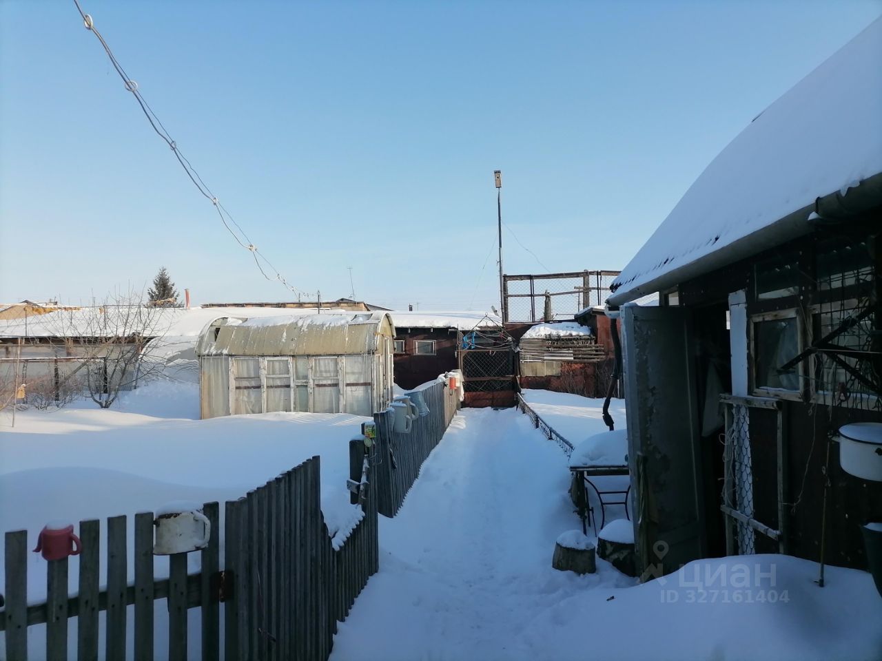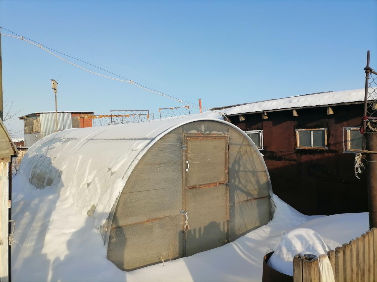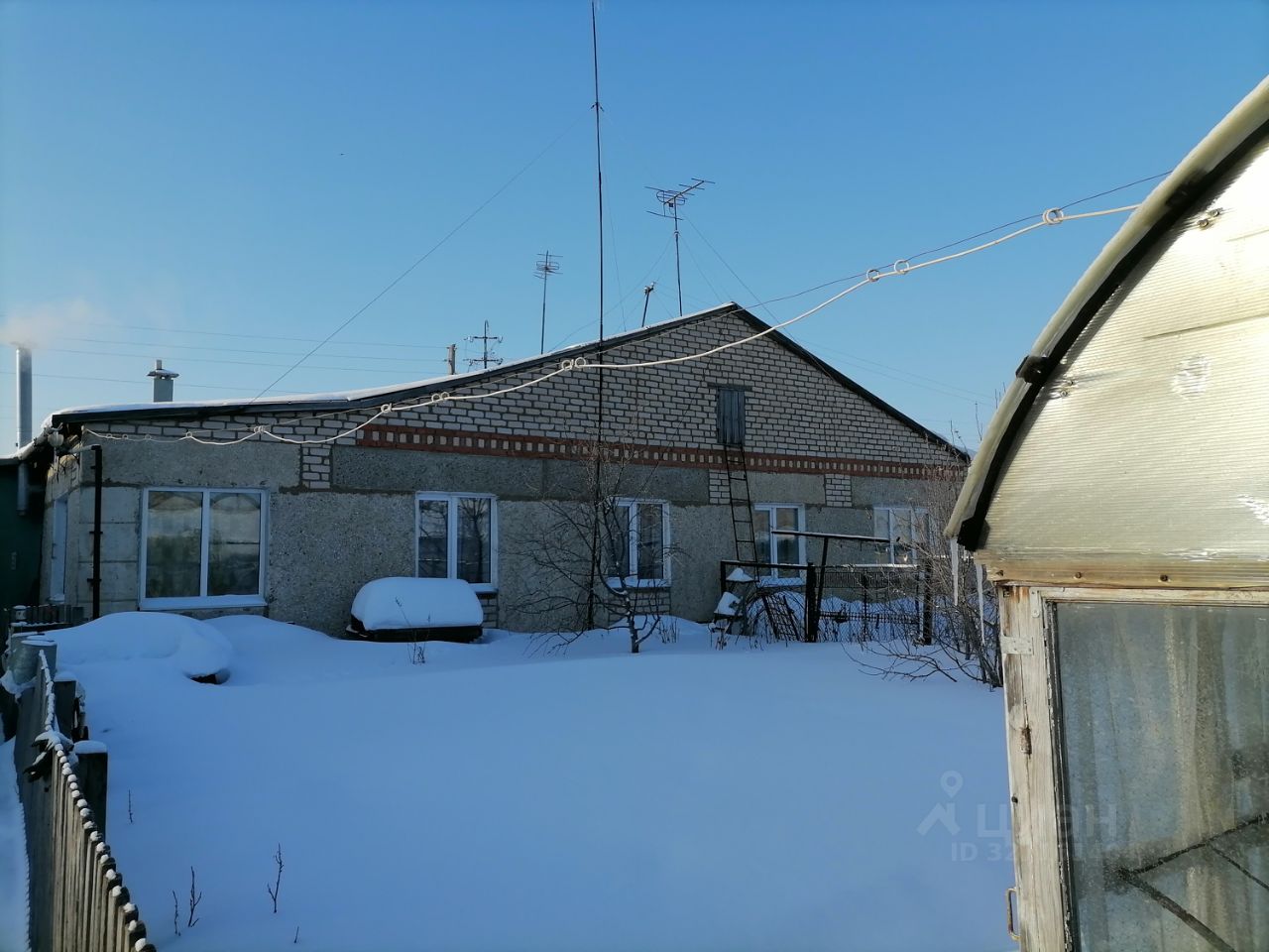 Дом окружен ухоженным участком (имеются посадки: яблони, вишня, малина, смородина, жимолость, виктория и др.), есть 2 теплицы, хозпостройки, баня, сарай, погреб, гараж с смотровой ямой. Асфальтированная дорога обеспечивает удобный подъезд к дому.