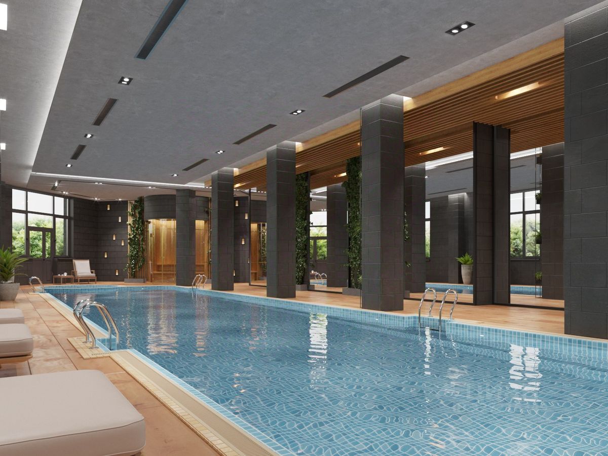 - спорт зал с бассейном на 1 этаже
