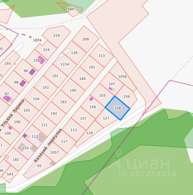 Данные получены с сайта ГИС Торги. Земельный участок с кадастровым номером 74:12:1104001:158 площадь 1190 по адресу Челябинская область, р-н Красноармейский, с Харино, пер.Казачий, 8''а''