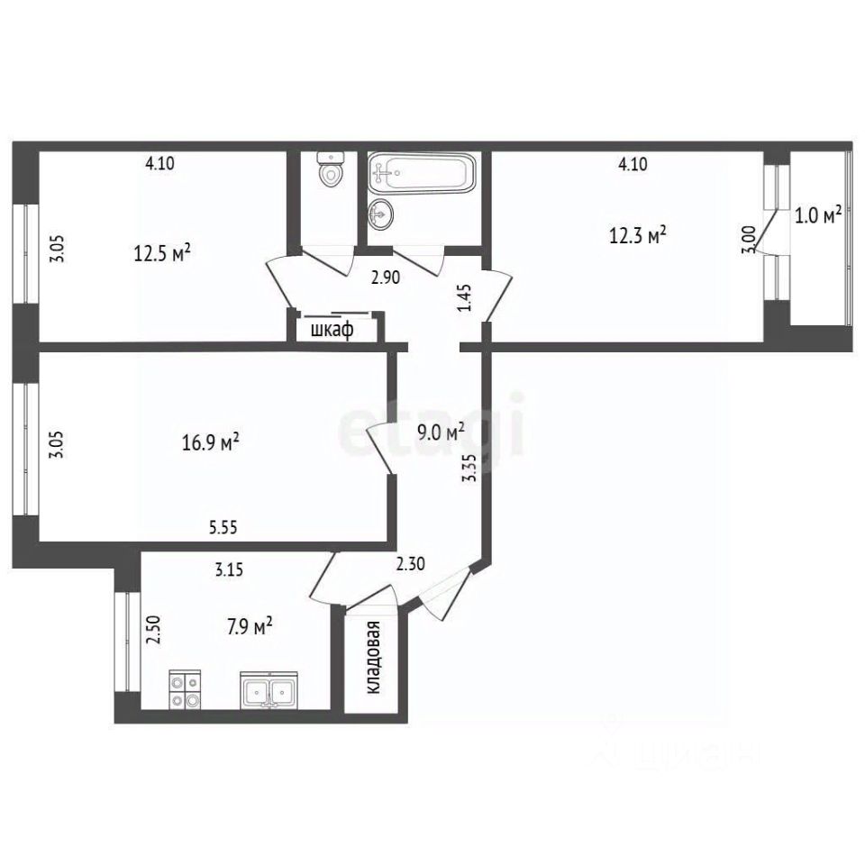 В продаже просторная трёхкомнатная квартира с в Курчатовском районе Каждому члену семьи — своё личное пространство!