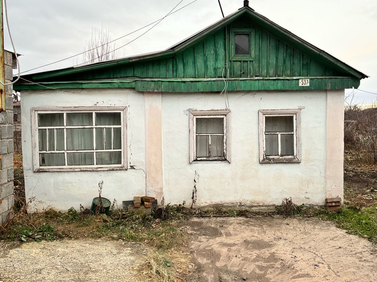 Домик из шлакоблока, с рабочей печью (требует небольшого ремонта). Веранда выполнена из дранки — уютное место для отдыха летом.