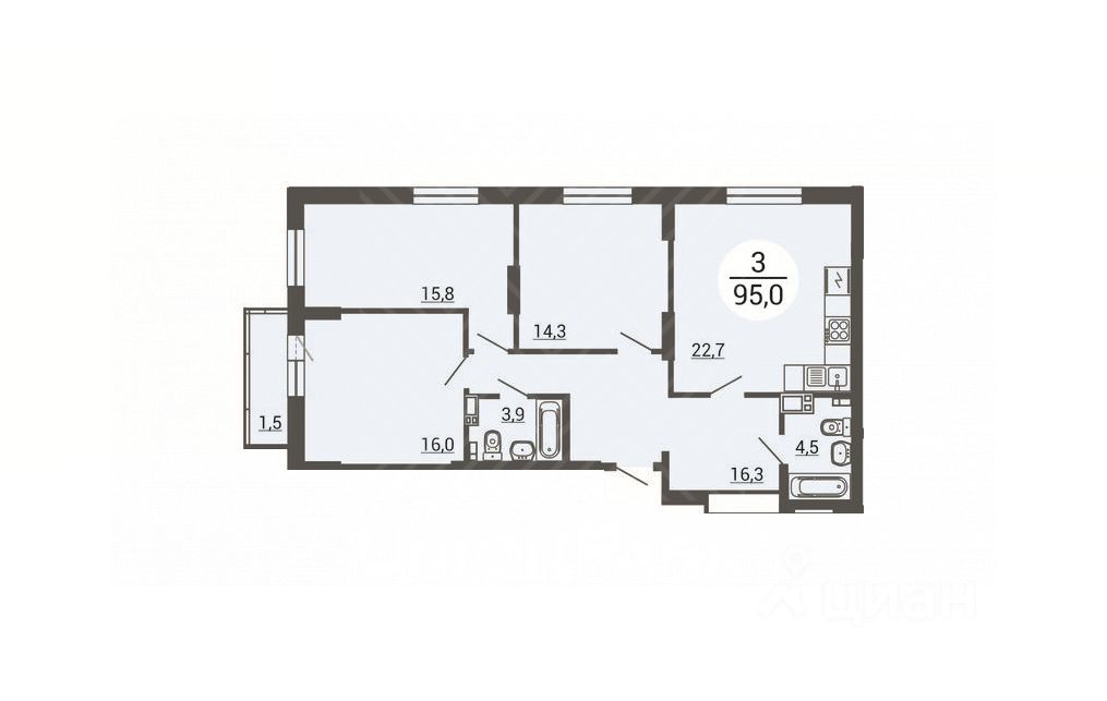 Арт. 132021306 Квартира от застройщика, подходит под семейную ипотеку.