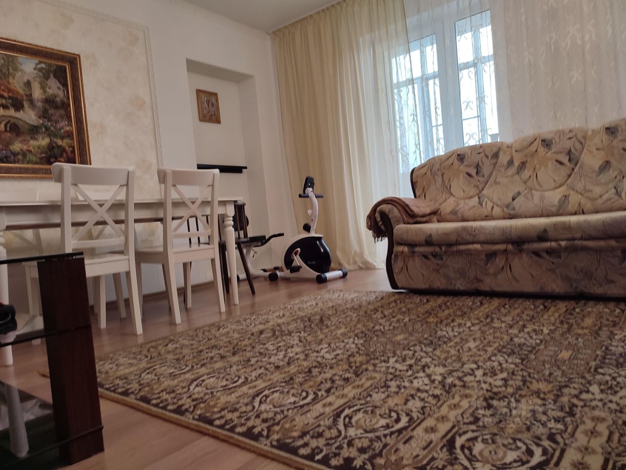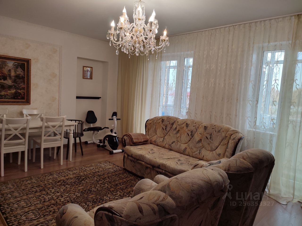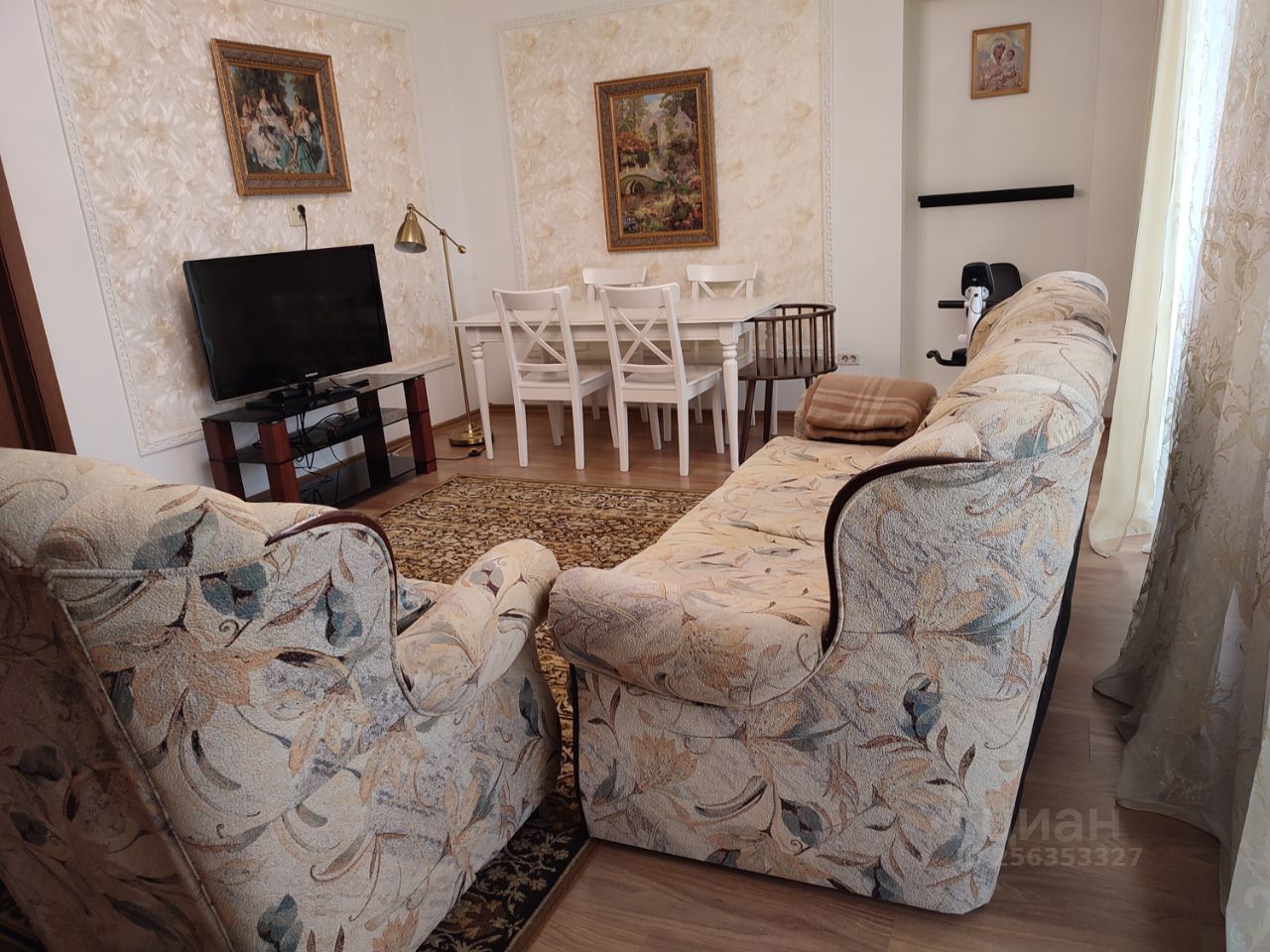 3-х комнатная просторная уютная квартира. Гостинная 24 кв.м. с лоджией 6 кв.м. Кухня 12 кв.м с выходом на вторую лоджию. Комната 15 кв.м. с выходом на лоджию. Комната 12 кв.м. Два санузла: один санузел совмещен (душевая, раковина, унитаз) , в санузле водонагреватель, второй санузел приспособлен под прачечную - раковина, стиральная машина. Гардеробная 5,6 кв.м. В санузлах, прихожей и на кухне кафель. Во всей квартире ламинат немецкий., двери ''Волоховец''- шпон натуральным дубом, потолки натяжные, стены ровные, кухонный гарнитур.